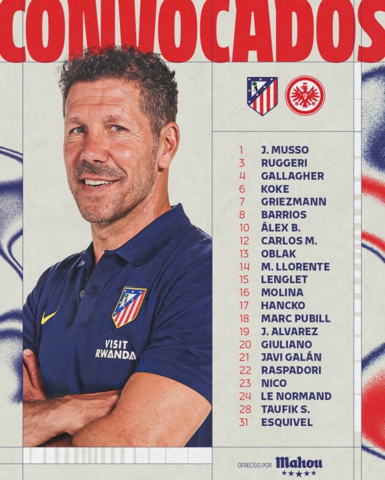 馬競對陣法蘭克福首發陣容公布 格列茲曼與阿爾瓦雷斯搭檔 小西蒙尼進入首發