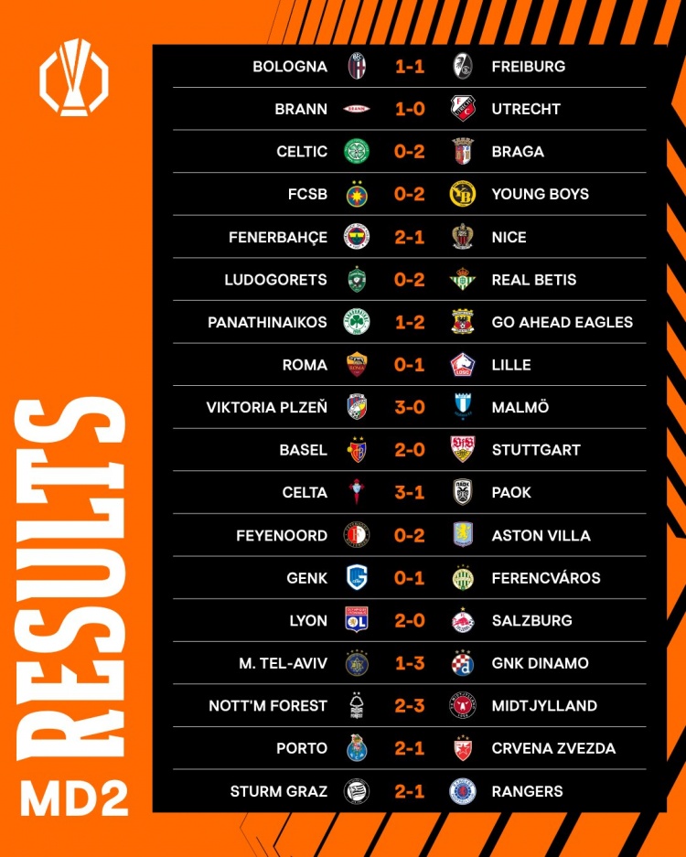 歐聯杯第二輪比賽結果 羅馬負於裏爾 費內巴切戰勝尼斯 維拉裏昂取得勝利