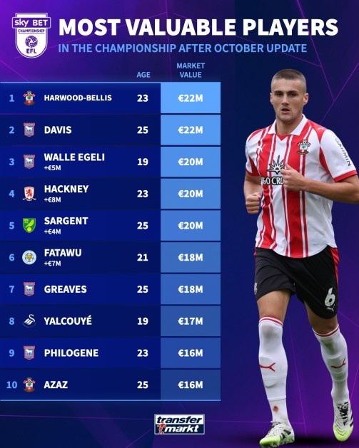 10月6日消息,近日德国转会市场对英冠球员的身价进行了更新,在这一排名中,南安普顿的哈伍德-贝利斯与伊普斯维奇的雷伊夫-戴维斯以2200万欧元的身价并列位居第一,展现出他们在市场上的较高认可度与潜力。